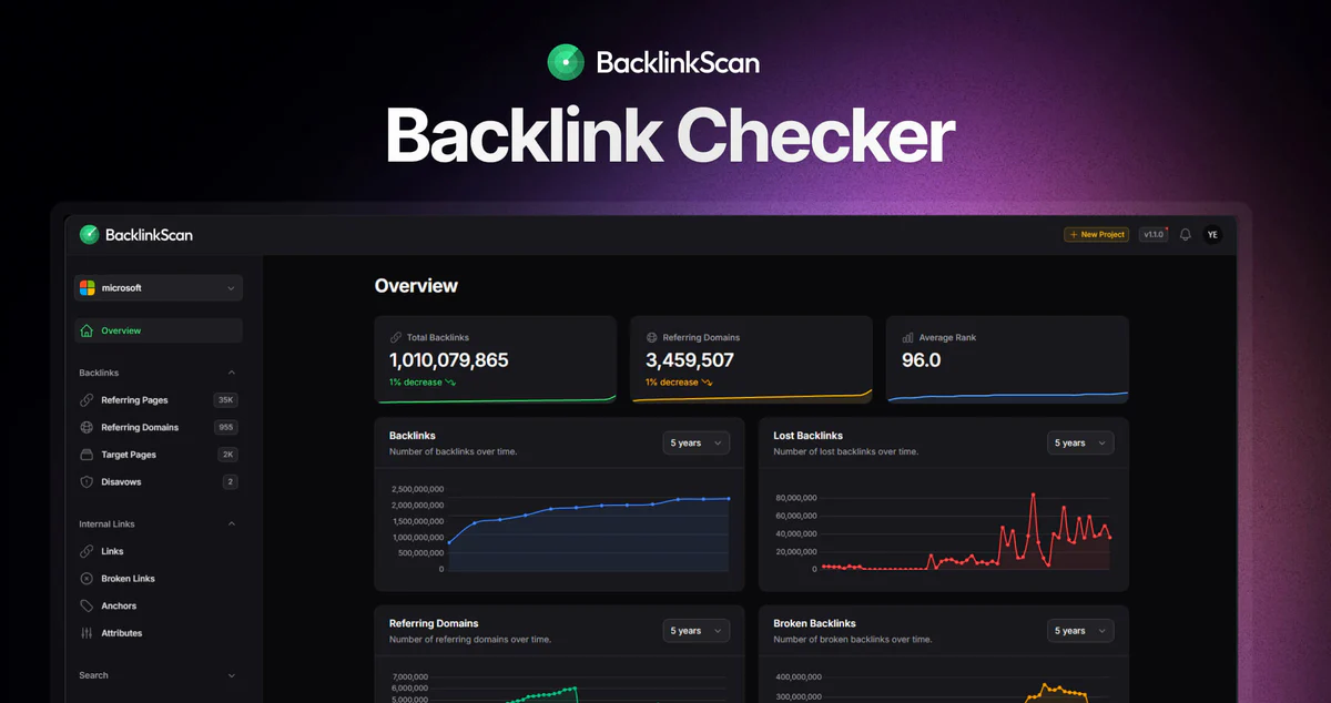 BacklinkScan is an AI-powered backlink checker that turns messy, overwhelming link data into clear, actionable SEO insights—so you can protect your domain, grow your authority, and focus only on what moves rankings.