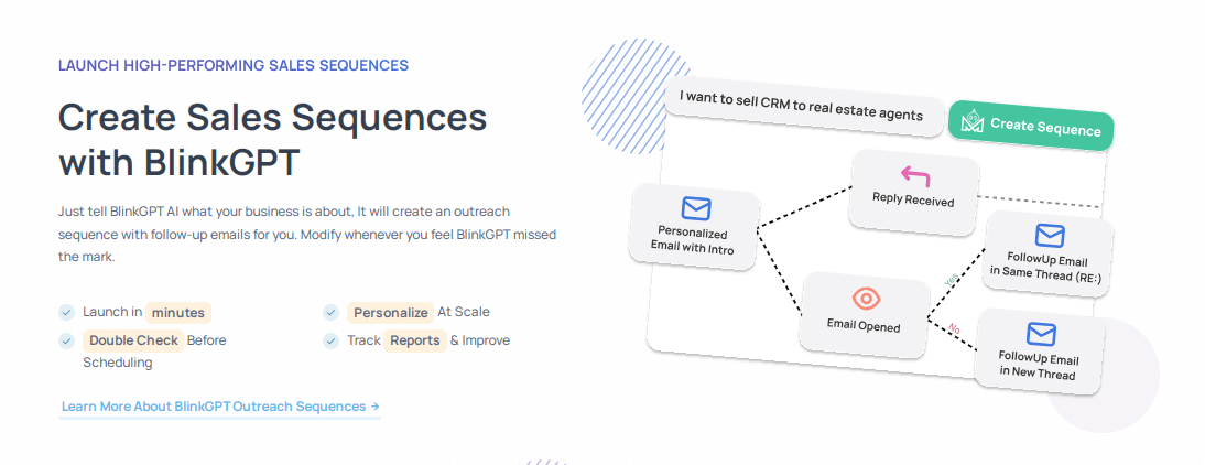 By combining the power of AI models like BlinkGPT, Salesblink allows businesses to automate high-performing outreach sequences and grow their sales faster.